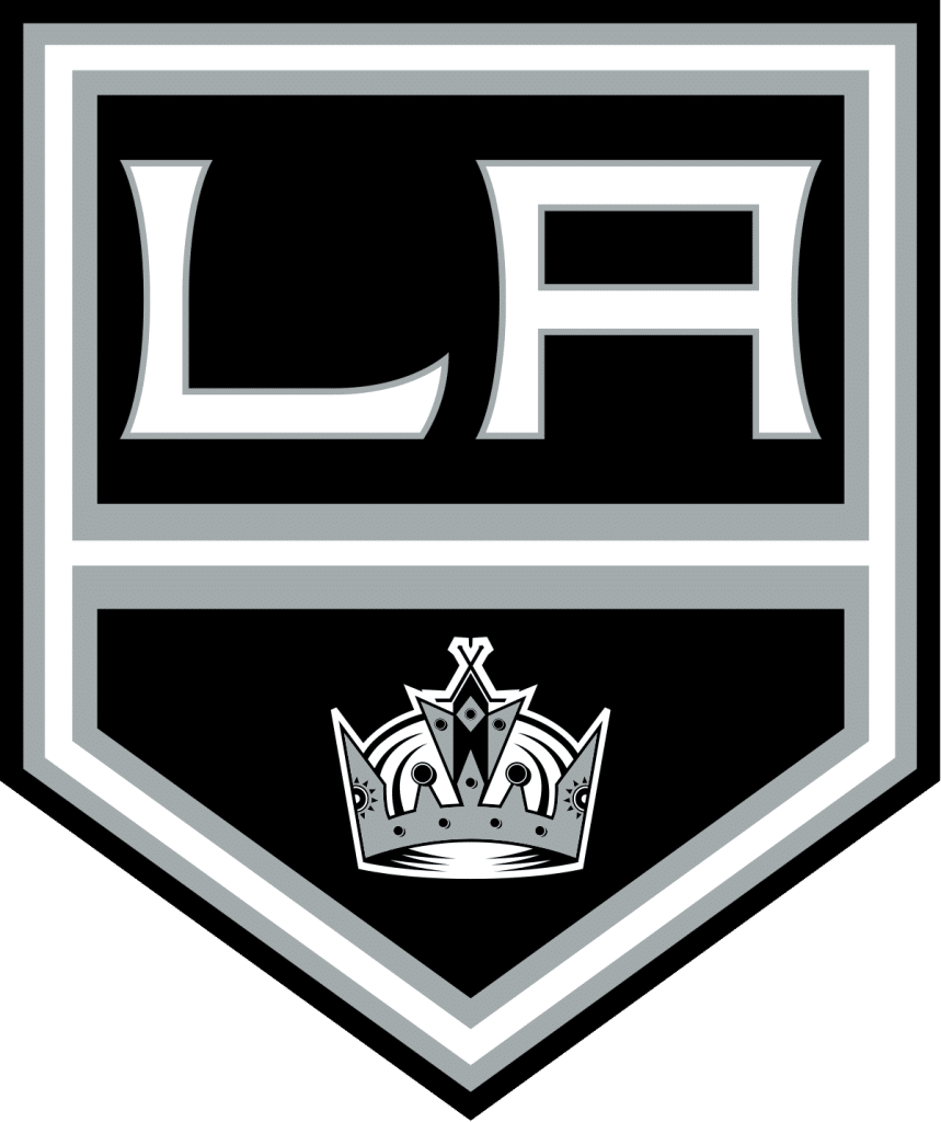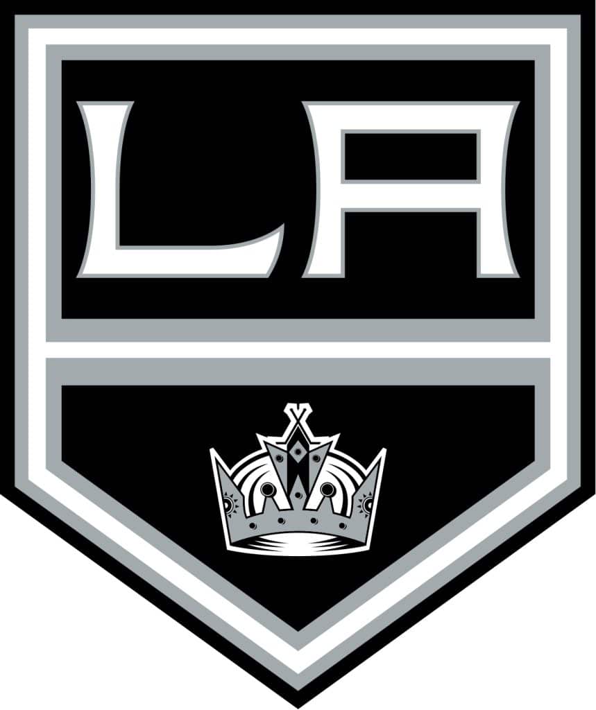 The team colors for the Los Angeles Kings, emblematic in their logo, are black, silver, and white.